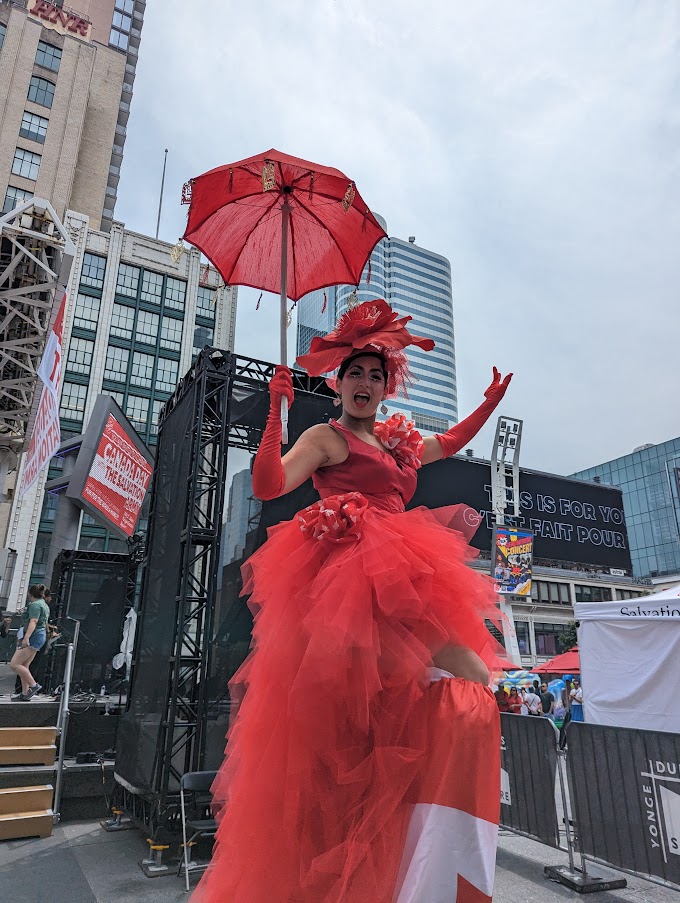 Hala on stilts Canada day Toronto stilt-walkers stilter performer Stiltwalkers 2023 Published July 3, 2023 at 680 × 903 in Canada Crimson ← Previous Next →