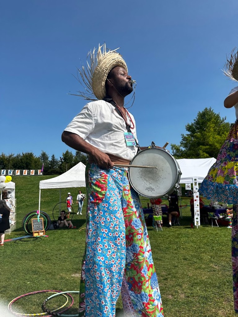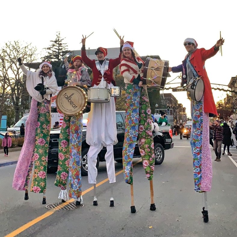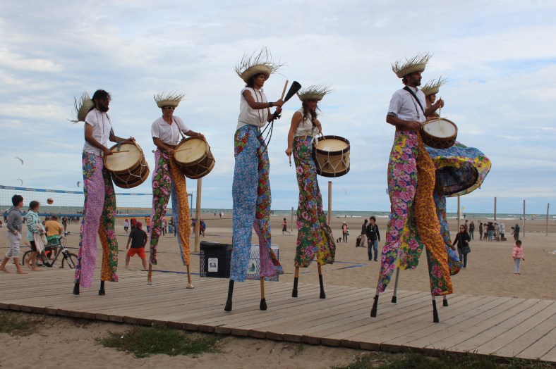 Maracatu is a traditional style of Afro-Brazilian percussion and music that comes from the northeastern state of Pernambulco. TallBeat (formerly MaracaTALL) stilts percussion performances have a minimum of 3 to a maximum of 6 members. Hala lived in Brazil (Bahia) where she learned to speak Brazilian Portuguese, and also played in a Samba and Afro-Axe style Brazilian Batucada for three years while she was living in Montreal( 2005-2007). Hala’s unique dual skill set of stilting and drumming makes TallBeat her most entertaining tall-walking project.