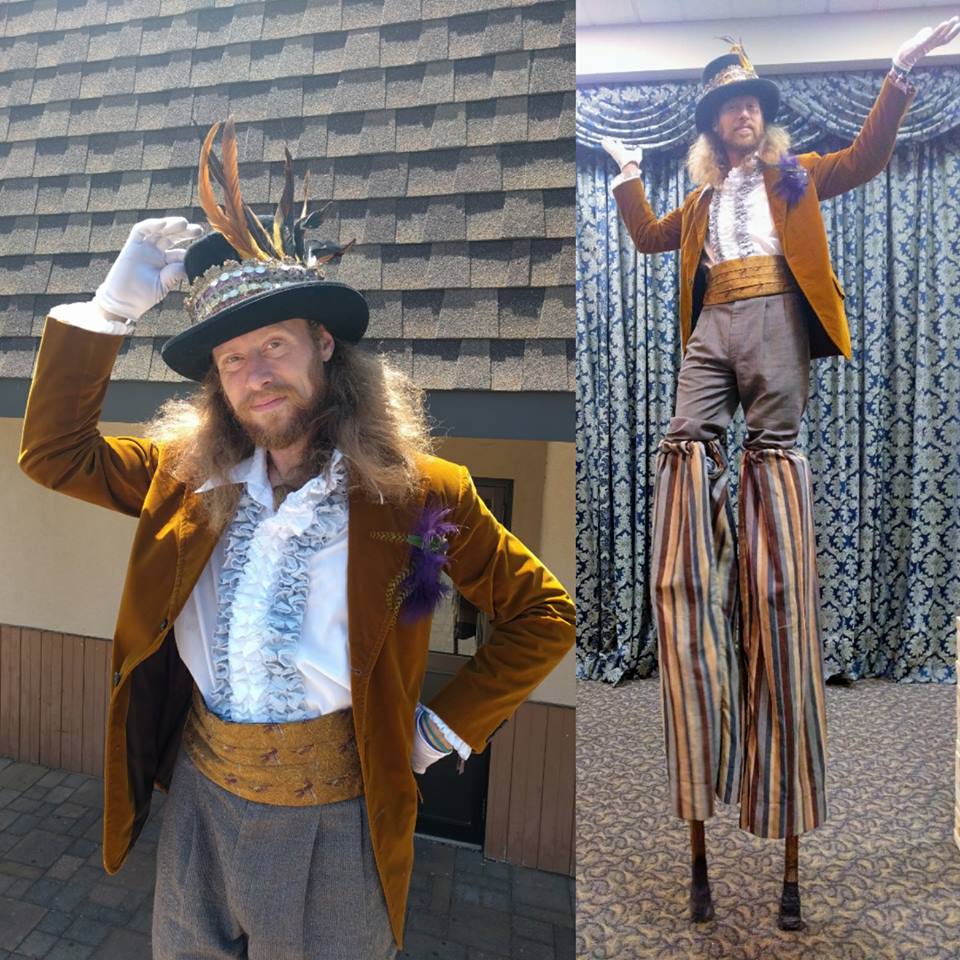 stiltwalker Gold retro tuxedo Hala on stilts Toronto Kitchener Published June 14, 2017 at 960 × 960 in Tuxedo Time ← Previous Next →