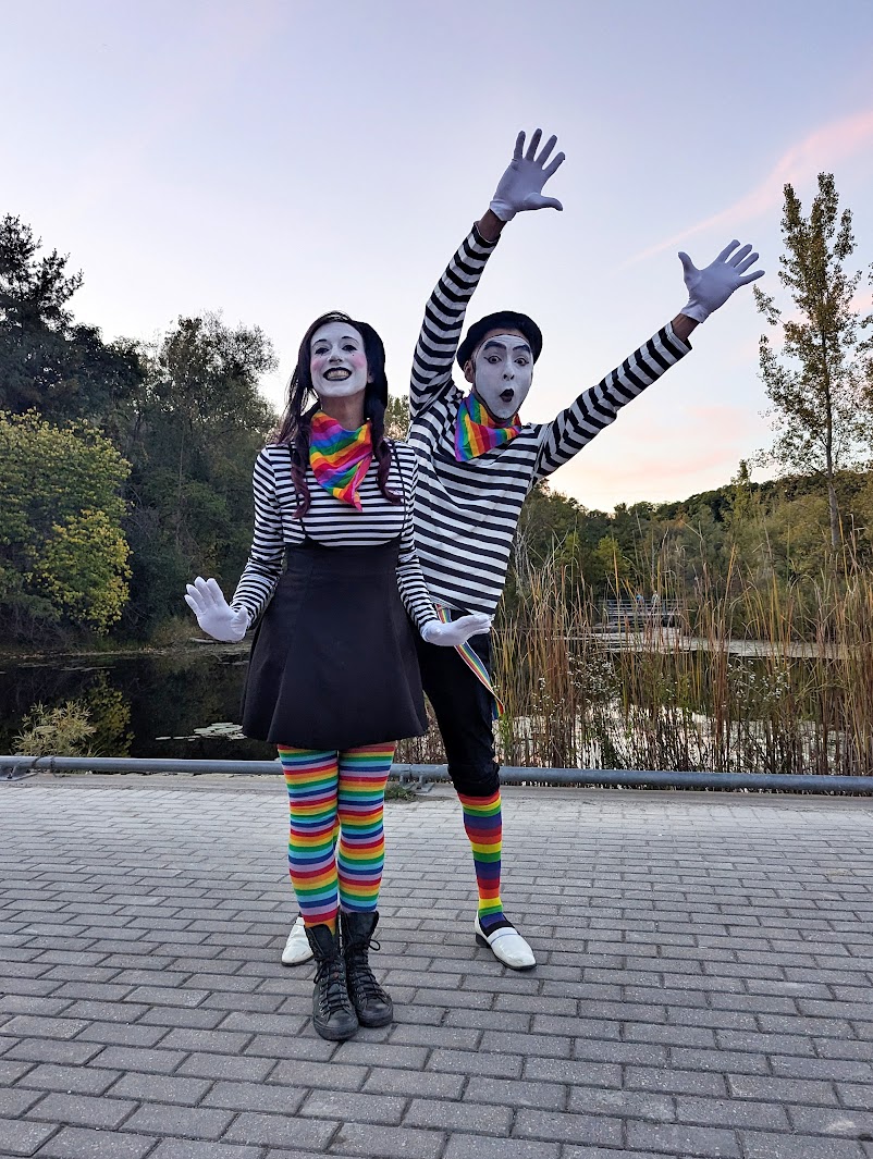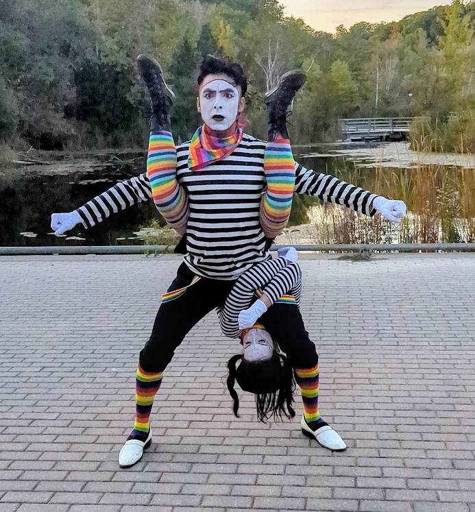 Whether they’re performing graceful lifts, cheeky stunts, or clever pantomime skits, they bring laughter, charm, and a touch of old-world whimsy to every event. They can also be dressed in costumes that fit your event theme. This talented duo turns any space into a stage and every moment into a smile. also check our our various single French Mimes options if you aren’t looking for a duo.