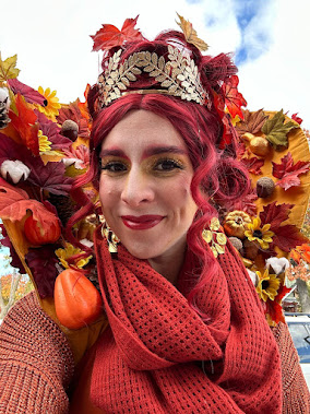 Introducing the Harvest Queen on Stilts, the radiant ruler of the autumn bounty! She has a cornstalk staff and is adorned in rich golden hues with a regal cornucopia collar overflowing with gourds, grains, and autumn leaves, she embodies the abundance and warmth of the harvest season. With a graceful presence and a heart full of gratitude, she strolls through your event, blessing the fields and sharing the spirit of the fall harvest. Whether at a Thanksgiving gathering, autumn festival, or seasonal market, the Harvest Queen brings a majestic touch of rustic elegance and celebration!