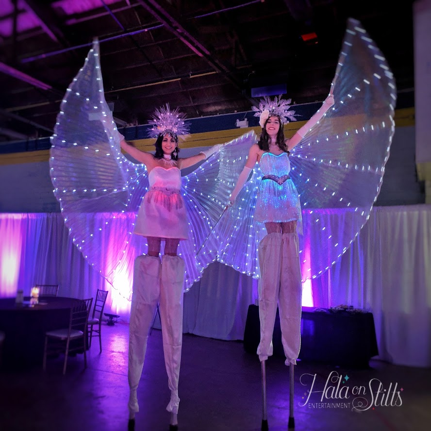 stilts LED wings light dresses toronto stiltwalkers Published March 11, 2019 at 888 × 888 in Fiber-Optic Fun ← Previous Next →