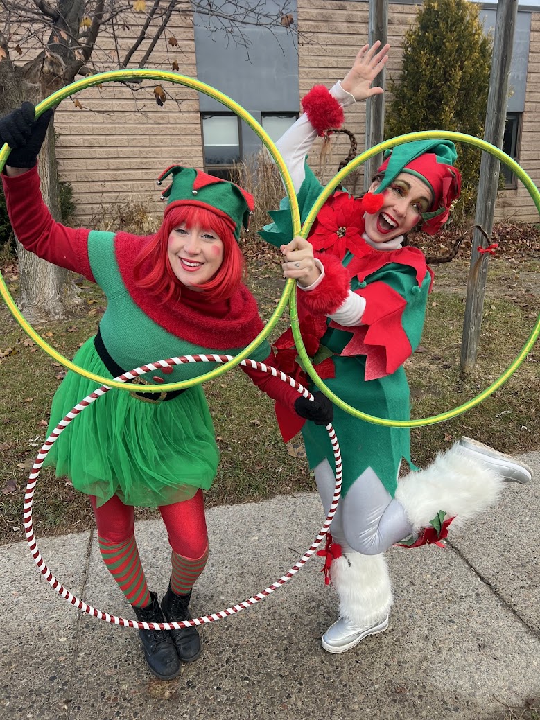 Celebrate the Christmas holiday spirit with Holiday Hoopers! Our circus Elves and Toy Soldiers bring their LED hoops or programmable ED Pixel Poi programmed with your logo or holiday themed images. Stage shows or roaming animation available. Pair them with any of our winter themed Stilt-walkers.