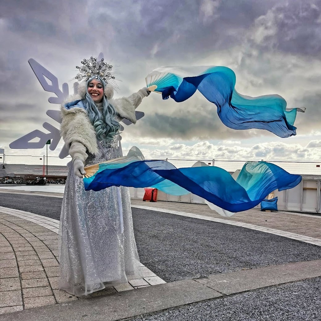 Meet our Snowflake Sprite, a graceful vision of winter magic brought to life! This enchanting roaming ground character sparkles with delicate snowflake wings. Call in her tall friends the Snowflake Fantasy stilt-walkers and you can have a whole Snowflake Family Ensemble! Whether for a holiday celebration, winter gala, or any seasonal event, the Snowflake Sprite will bring the charm of a snowy wonderland to life.