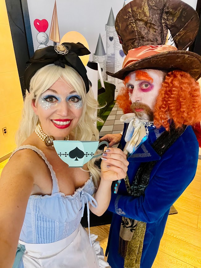 Together, they wandered through this frosted Wonderland, one calm and curious, the other joyfully mad, inviting guests to step into a place where winter sparkles, time misbehaves, and imagination leads the way. Perfect for winter festivals, holiday events, immersive experiences, and curious gatherings of all ages, the Frosted Wonderland Characters bring storybook magic to life, one snow-dusted moment at a time.
