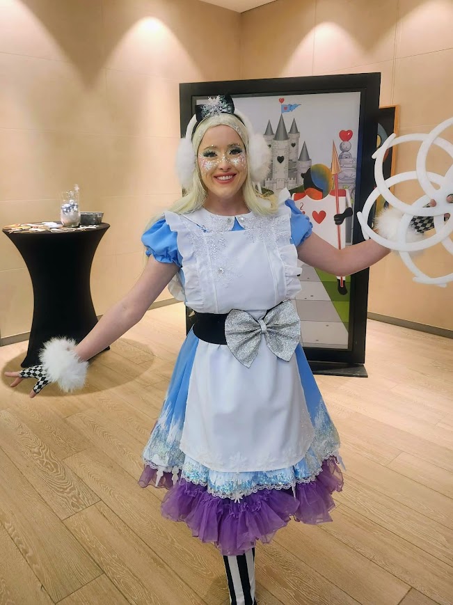 It was a very curious thing to happen on a winter’s day when Wonderland began to frost over. First came Alice, lighter than snow, drifting through the crowd as though she’d just stepped out of a dream. With glowing flow props, she traced circles of wonder in the air.