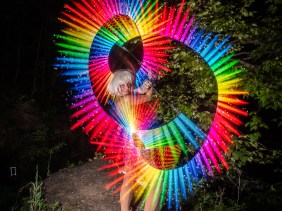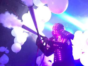 These costumes feature multicolour changing smart LED lights, however many of my general costumes either have added LEDs or LEDs can be added.